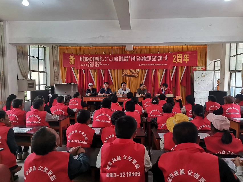 為深入貫徹落實“技能云南”行動要求,以“提技能、促就業、增收入”為核心,以“規范、提質”為目標組織脫貧人口開展生產經營和就業技能等職業培訓,提升職業技能水平,提高持證率和就業率。根據縣委、縣政府統一安排部署,自8月24日召開2023年度第一批“人人持證 技能致富”專項行動培訓項目啟動會議以來,鳳慶縣鄉村振興局、鳳慶縣人力資源和社會保障局、各鄉(鎮)、村(社區)三級聯動,云縣宏華職業技能培訓學校迅速行動。9月1日,勐佑鎮新寨村(動物疾病防控)率先開班。